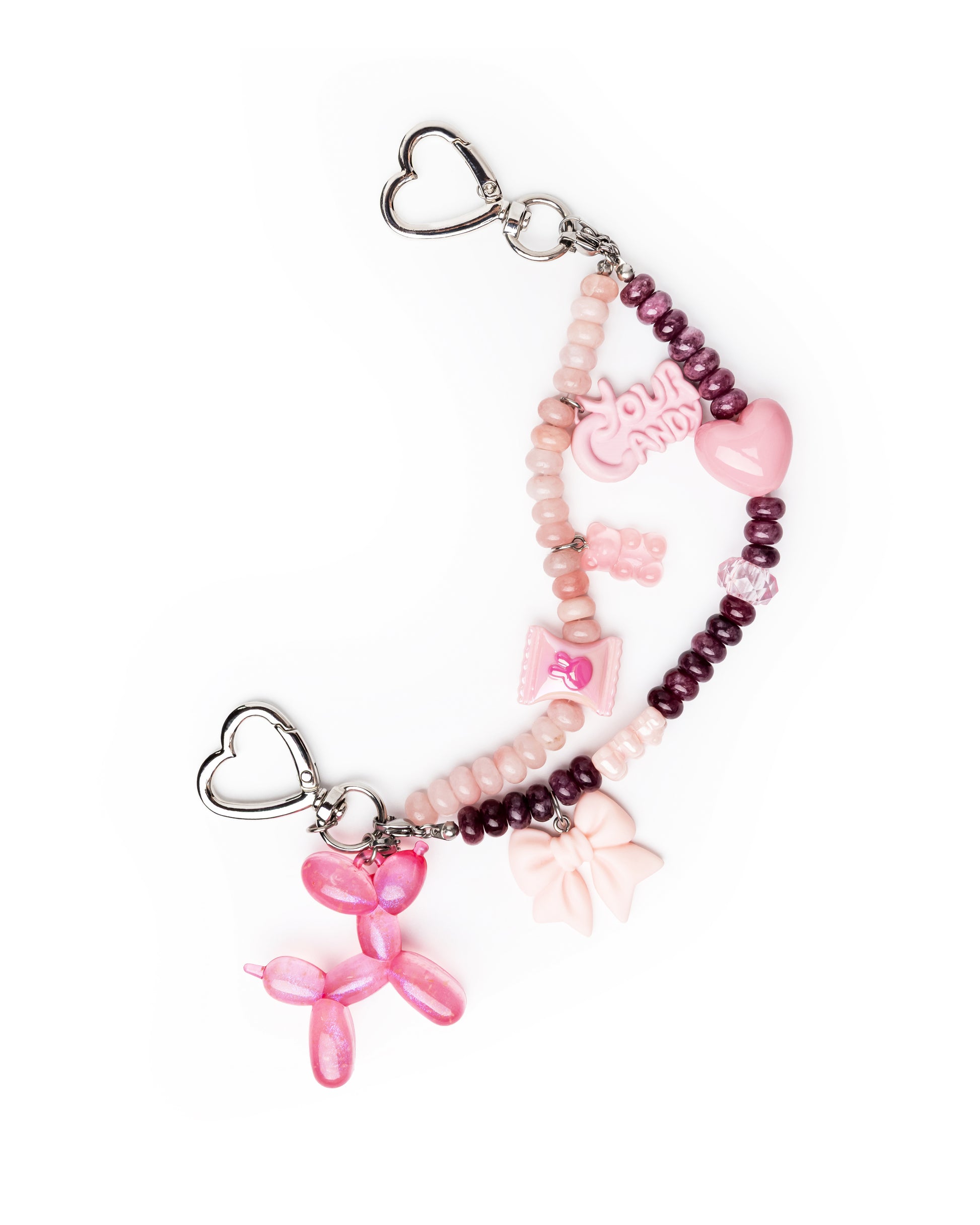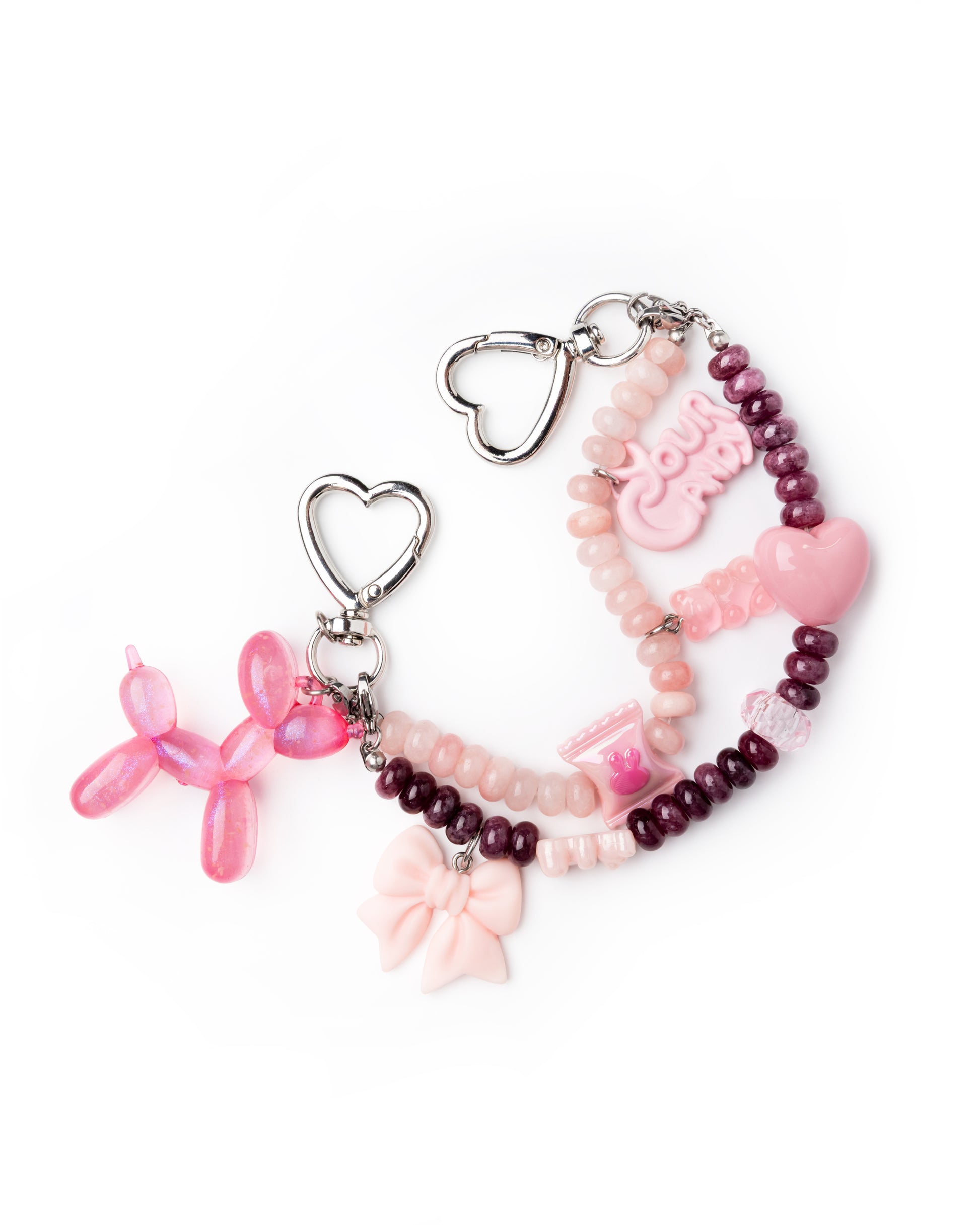 Friendship is a soft and playful bag charm that reflects warm connections sweet memories and the lightness of the moment. The palette combines powder pink and deep berry tones creating a gentle yet expressive contrast.